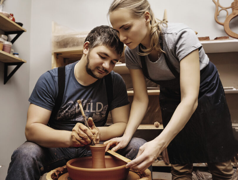 Мастерская «СеверАрт35» появилась в Вологде в 2016 году. Семейная пара Сергей и Анастасия Нуриджанян решили освоить новое хобби и начали лепить из глины. Сначала просто так, для души и совместного времяпровождения. Сергей сразу понял, что ему интересен гончарный круг – идеальные ровные изделия, медитативный процесс работы, легкие по весу чашки и тарелки на выходе. А вот Анастасия выбрала для себя ручную лепку – слегка небрежные края на тарелках и чашках, такие неидеальные, но при этом неповторимые.