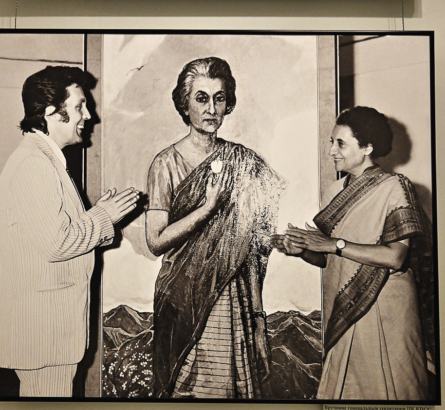 Илья Глазунов и Индира Ганди. Художник выполнил ее портрет за 12 дней. Его вручил ей сам Леонид Брежнев, после этого заказав у мастера свое изображение, коим оказался очень доволен.