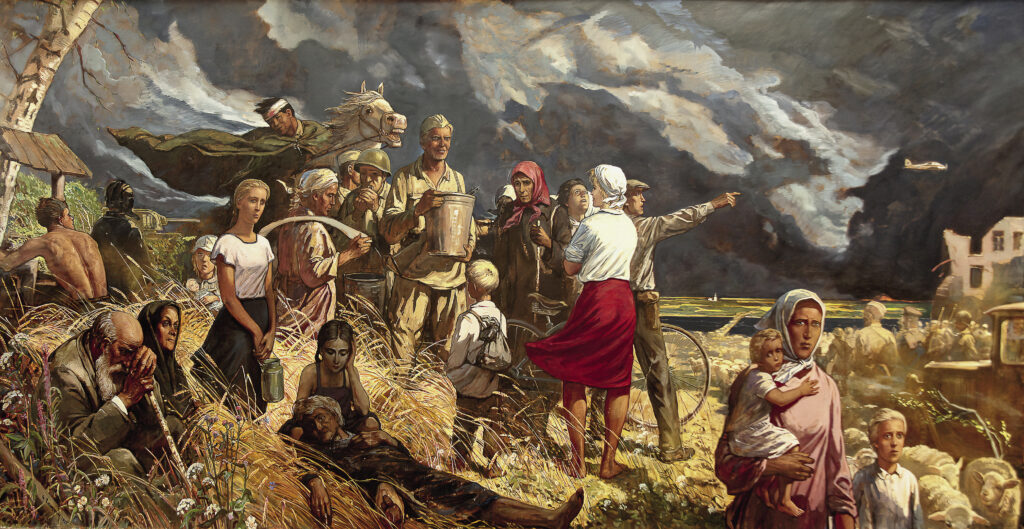 Картину «Дороги войны» Глазунов готовил как дипломную работу, учась в институте. Она была признана антисоветской и запрещена к показу.