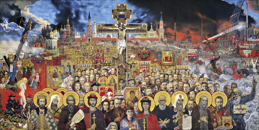 Будучи человеком верующим, Глазунов проводил параллели между судьбой Христа и историческим путем России. Если есть распятие, а под этим он понимал революцию 1917 года и последующие события, значит, будет и спасение.