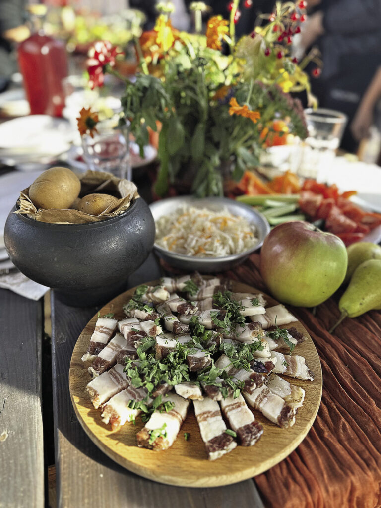 Чуть дальше, в Великомихайловке, музей Первой конной армии кормит уже по-походному: обед конармейца – наваристый борщ, отварные яйца, картофель в мундире, домашнее сало, соленые огурчики и хлеб из печи, а еще чай из местных трав. Еда, которая грела бойцов почти сто лет назад, сегодня согревает туристов, решивших прикоснуться к истории Красной кавалерии.