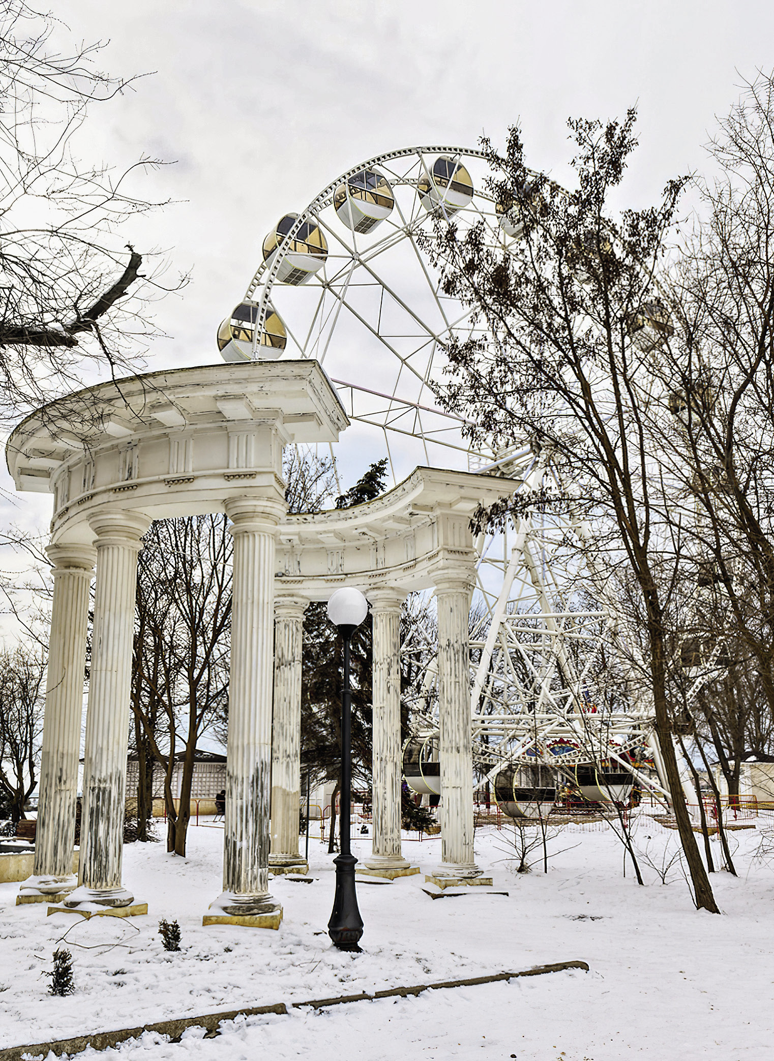 Колоннада и колесо обозрения в саду имени Д.Л. Караева в Евпатории. Сад был заложен в XIX веке караимским предпринимателем Садуком Шакаем.