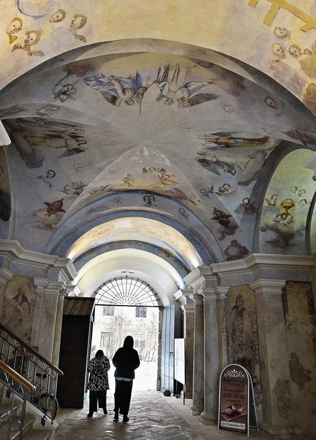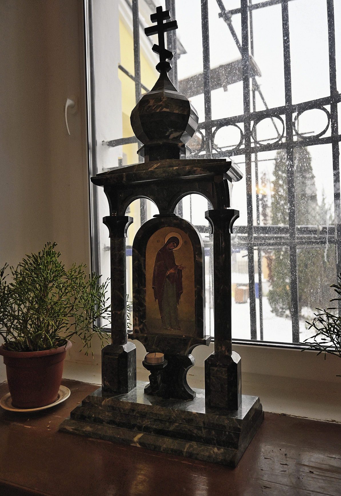– Во время различных земляных работ были обнаружены человеческие останки. Кому они принадлежат – не известно. Мы их омыли и бережно сложили в этом помещении в память о красноармейцах, погибших здесь во время Великой Отечественной войны. Тогда в подклете Введенской церкви фашисты заперли 78 пленных, и в мороз все они погибли, – говорит игумен. – Вообще, костницы делали в пещерных монастырях, где дефицит земли и негде хоронить умерших братьев. До революции здесь был обычный амбар, где хранили продукты.