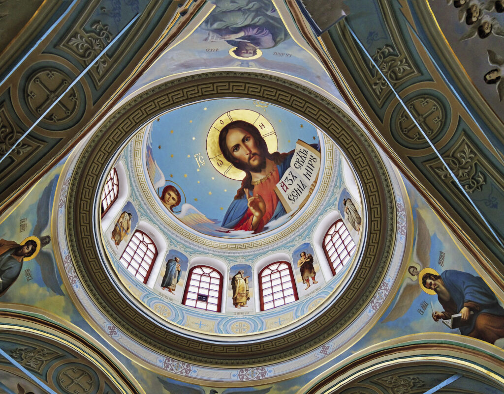 Лик Христа на подкупольном пространстве собора Троицы Живоначальной Старицкого Свято-Успенского монастыря. Храм был построен в 1819 году на средства Алексея Тутолмина